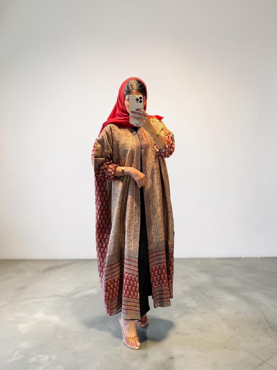 Red Indian silk Abaya